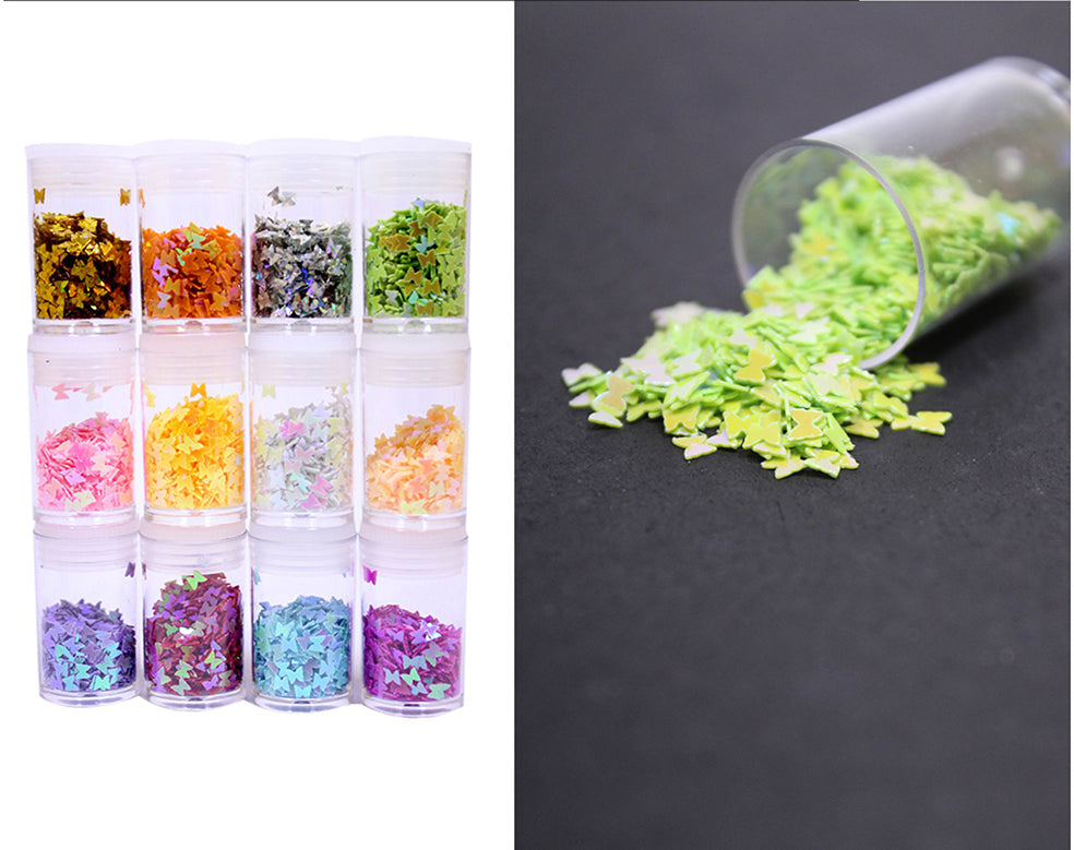 This set of 12 butterfly sequences adds a touch of sparkle to any resin decoration. The carefully crafted glitter showcases a beautiful and unique look, perfect for any creative project. Enhance your designs with this professional and versatile set.