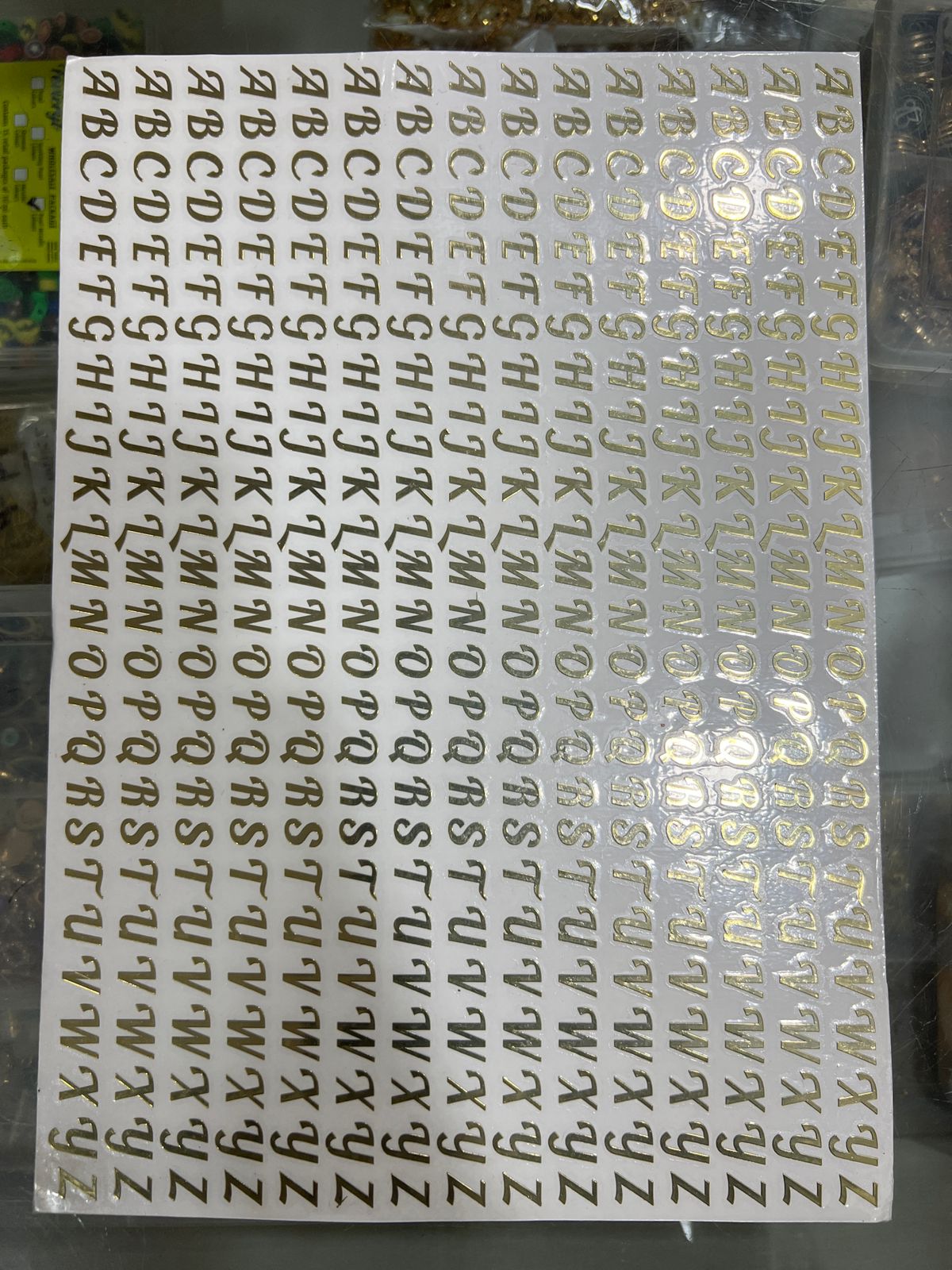 This A4-sized metal sticker sheet features capital alphabet letters approximately 1 cm in size. Designed for precision and durability, these metal stickers are ideal for labeling, crafting, or decorative projects requiring a professional finish. The compact letter size ensures versatility across various applications while maintaining clear visibility.