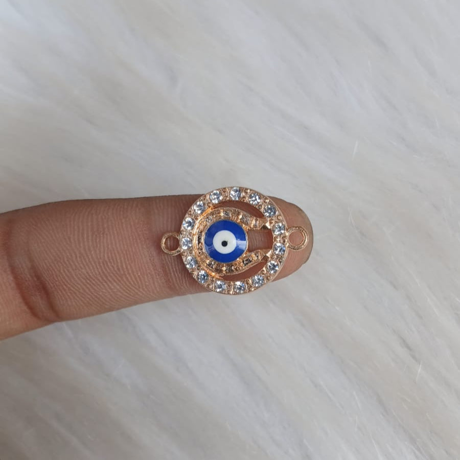 Elegantly crafted Gold Evil Eye Charm designed specifically for enhancing Rakhis and bracelets. This protective amulet adds a sophisticated touch while symbolizing spiritual protection against negative energies. Perfect for gifting during Raksha Bandhan or adding a meaningful element to personalized jewelry creations.