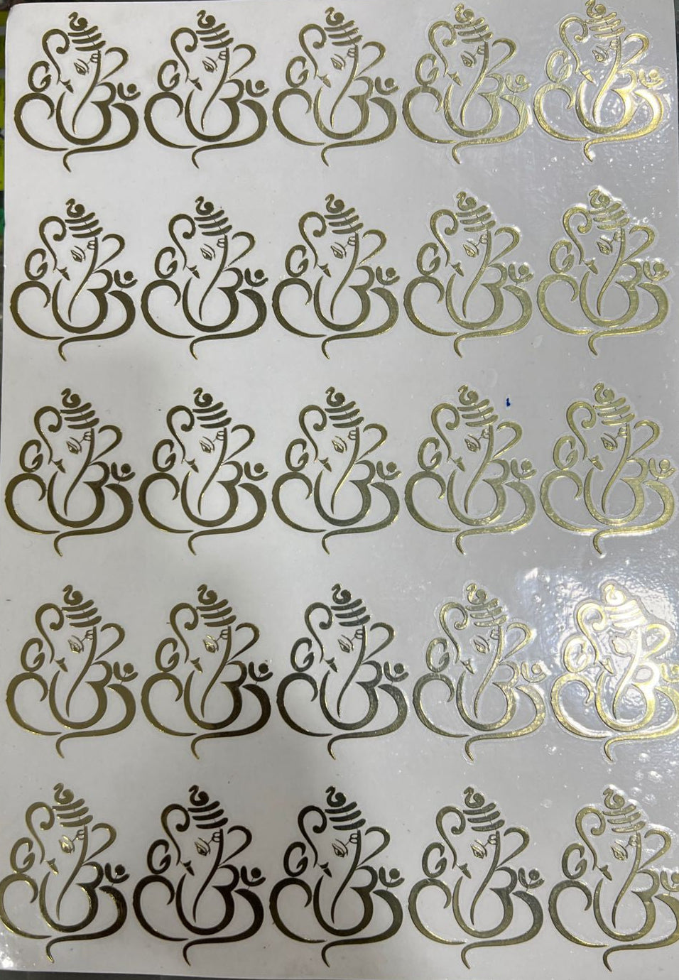 This A4-sized metal sticker sheet features intricately designed Ganesha motifs measuring 2 inches each. Crafted for precision and durability, these stickers are ideal for embellishing various surfaces with a traditional touch. Perfect for artisans and decorators seeking high-quality metal decals that combine aesthetic appeal with lasting adhesion.